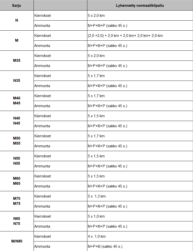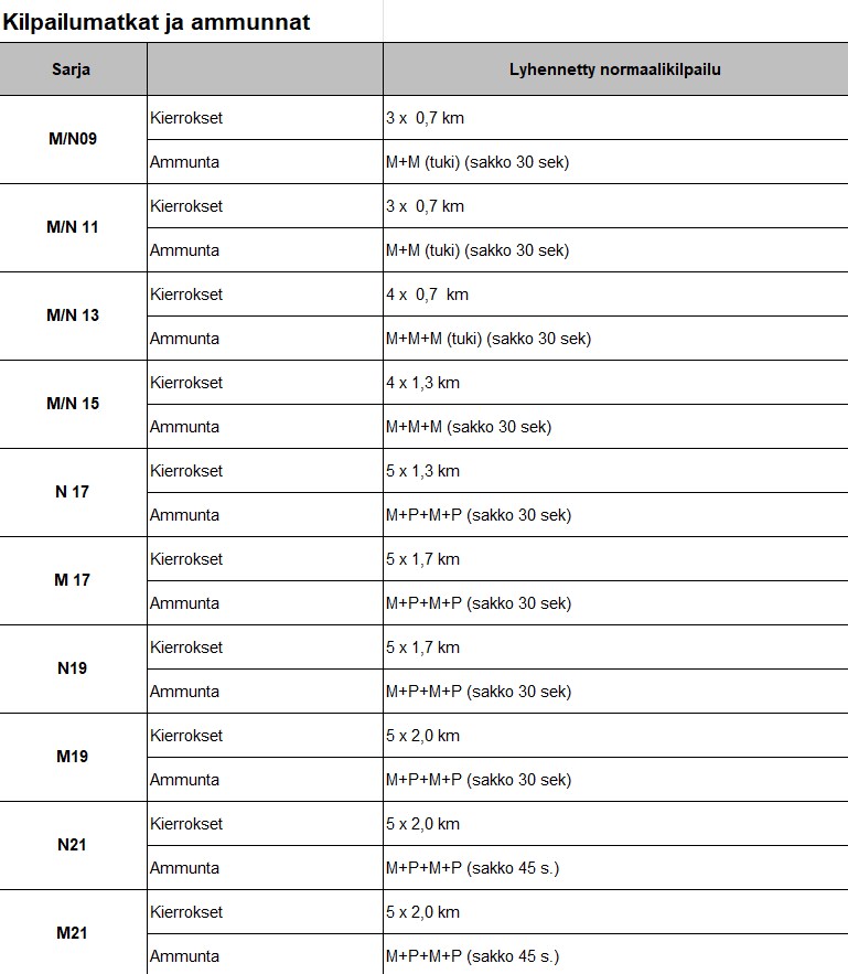 Kilpailumatkat, ammunnat ja kartat 3.3.2026