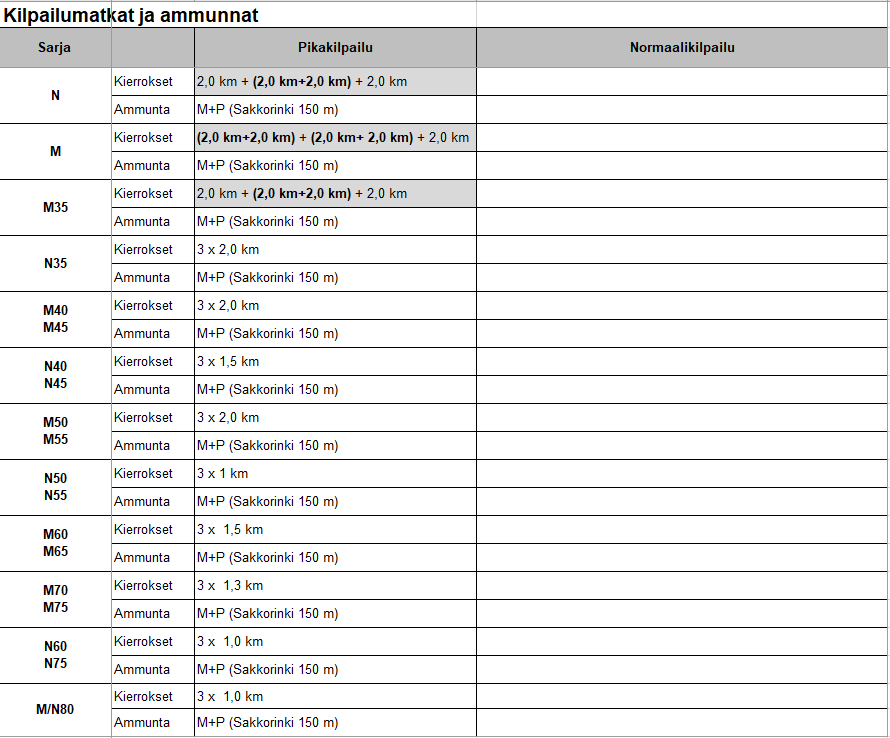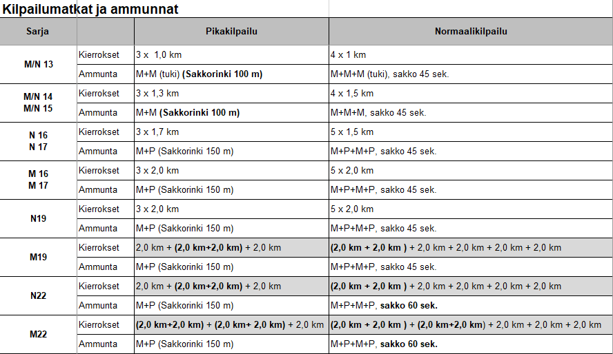 Kilpailumatkat, ammunnat ja kartat 11.1.2026