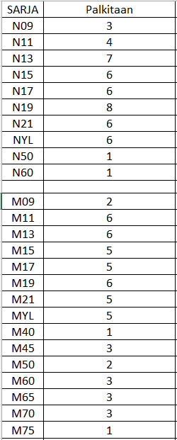 Palkintojenjako suoritetaan tulosten valmistuttua.